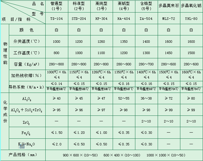 【產(chǎn)品性能】 ※可直接接觸火焰、耐高速氣流沖刷、抗風(fēng)蝕能力強 ※高溫性能穩(wěn)定、抗熱震、低熱容、高溫狀態(tài)下耐壓強度高 ※厚度與容重成正比 ※由于無機(jī)結(jié)合劑的加入,使制品具有較高的耐壓強度、且具有良好的韌性 ※安裝方便
